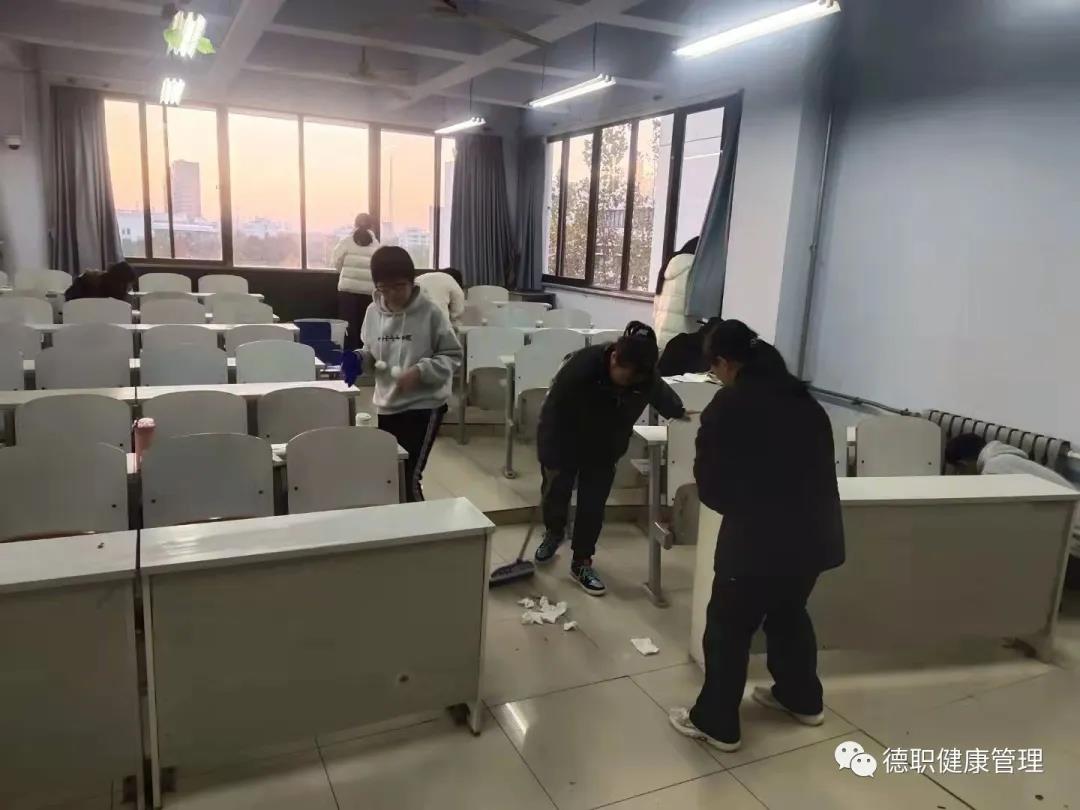 由卫生部部长禹伟开会强调安全纪律,明确打扫要求及任务分工。同学们积极乐观的按照分工,认真地全面打扫合堂的每一个角落,清除墙角污迹,擦洗黑板,清扫地面,整理讲台等。