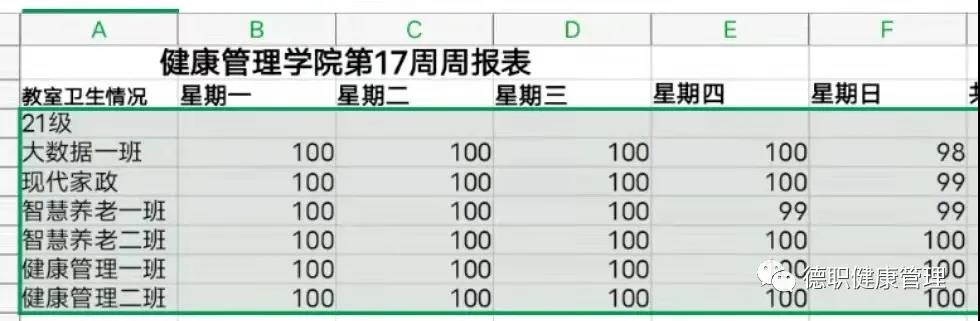 第十七周卫生检查分数量化表: