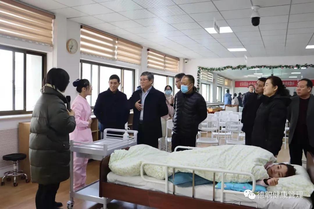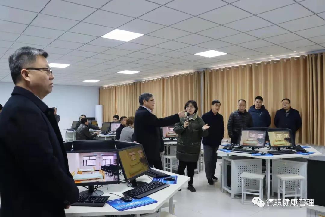 范轶同志首先就太阳成集团tyc9728筹建两年来建设的基本情况情况进行简单介绍。她介绍了为构建以“尊”“敬”为核心的“尊老、敬业、专技、守诚”的专业育人体系打造的迎宾墙和誓言墙。随后范轶重点介绍了刚刚建成的校内“智慧康养理训一体室”和校外产教融合实训室。“智慧康养理训一体室”建筑面积140平方米,可满足48名员工同时上课,实现项目化教学的需求。目前,前期基础建设项目已完成,将承担智慧养老、健康管理和健康大数据专业《智慧为老平台运行管理》、《人体结构与功能》、《流行病学》等课程的理论教学任务。待整个项目完成,还可以承担员工开展呼吸系统、消化系统、运动系统等人体结构认知的实操训练任务。