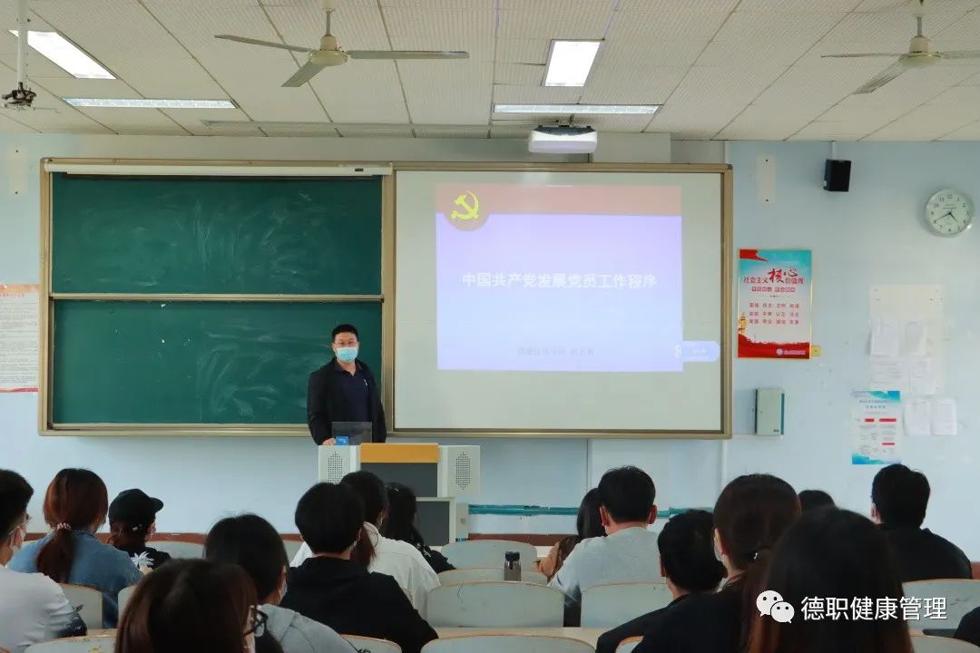 郭经理向同学们介绍了党员发展的程序,要求同学们端正入党的动机,处处严于律己、处处讲原则、处处讲信仰、吃苦在前,享受在后,时时刻刻把群众的利益放在首位,努力践行全心全意为人民服务的宗旨,在任何情况下都忠诚于党,绝不背叛。