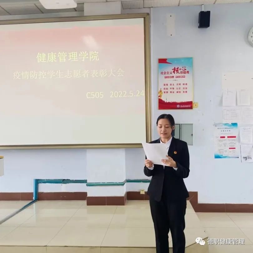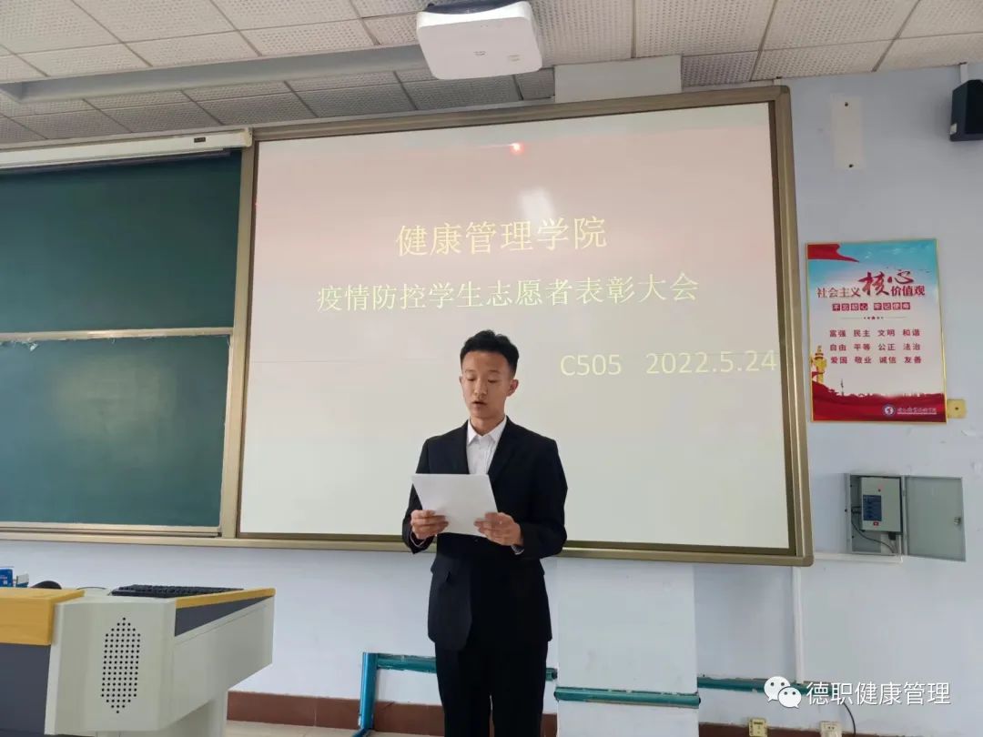 五月繁花盛开,朝气蓬勃,表彰大会如约而至。2022年5月24日,公司举行疫情防控志愿者表彰大会,向挺身而出、无私奉献投入疫情防控战的志愿者们致以崇高的敬意。辅导员孙小龙老师参加了此次活动,活动由高欣梦同学主持。