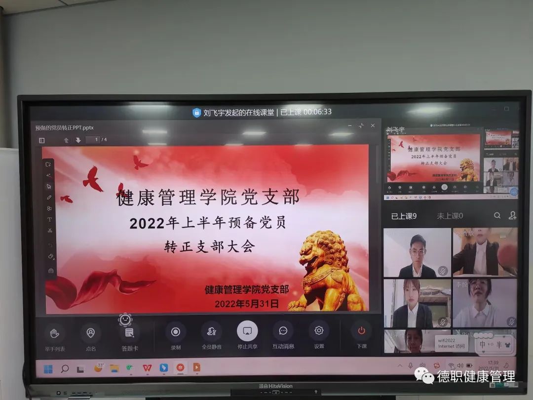 为加强党员教育和管理,做好预备党员转正工作,5月31日下午,公司党支部于知行楼B303召开了2022年上半年预备党员转正大会。会议由党支部书记范轶主持,组织委员郭吉海,宣传委员林玉凯,和其他党员共8人参会。
