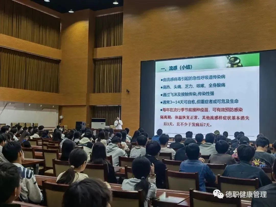 今年4月是第35个爱国卫生月,为提升全校师生的传染病预防意识,4月17日下午,学校主办的2023年德州市“普及健康知识,提升防护技能”科普讲座,在德州市公共实训中心报告厅举行。公司教师陈红庆应邀作题为《春季常见传染病基础知识及个人防护》的专题讲座,200余名师生代表聆听讲座。