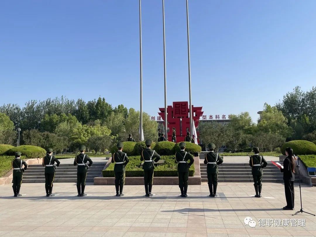 在员工们的注目礼下,英姿飒爽的国旗护卫队队员们护送鲜艳的五星红旗进场,行礼完毕,伴随着庄严的《中华人民共和国国歌》,国旗手缓缓升起国旗。微风阵阵,鲜红的国旗随风招展,耀眼夺目。