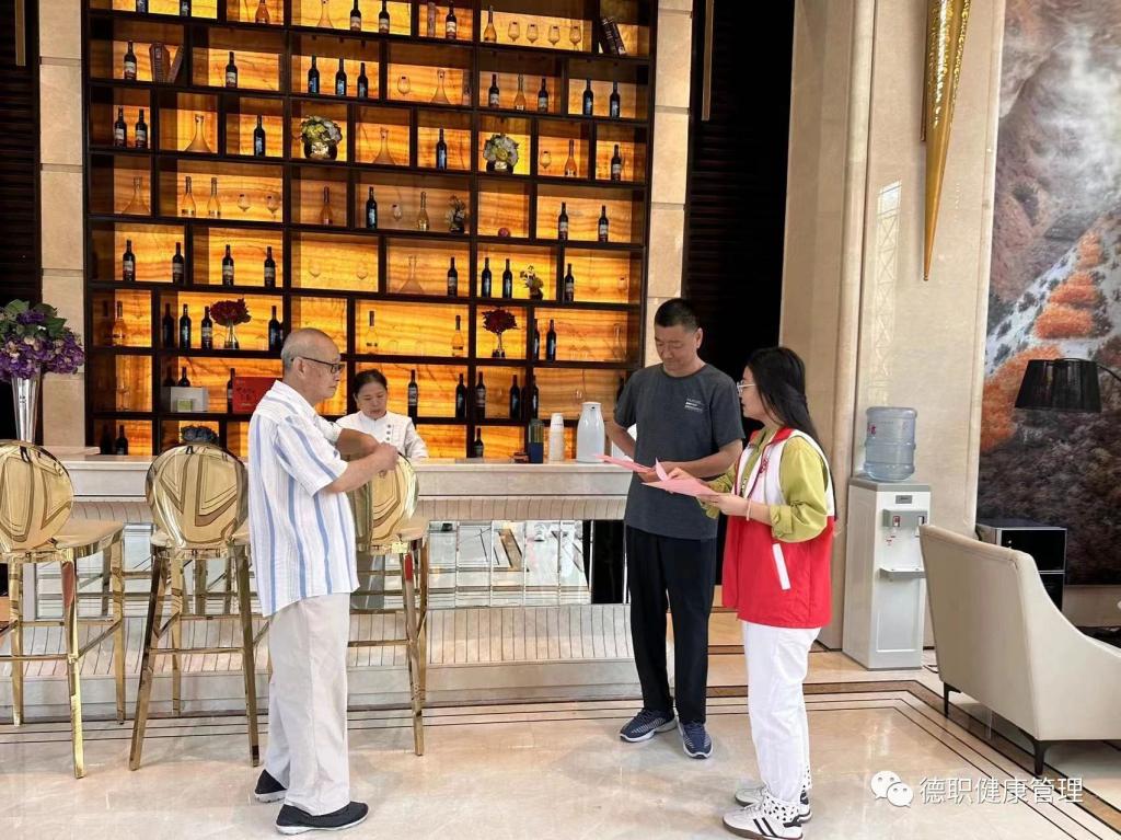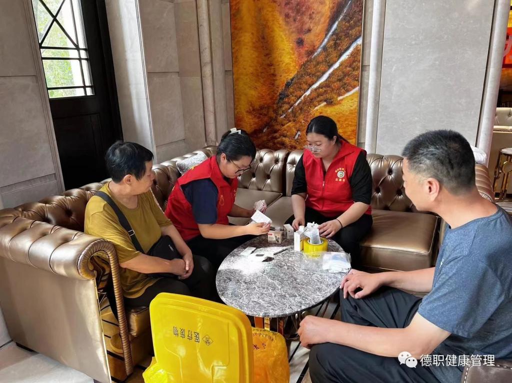 活动现场中,德馨社区的居民闻声纷纷赶来测量,公司志愿者们耐心地为其逐个测量血压、血糖、血氧,了解其身体健康状况。测完后,志愿者们根据居民的血压等情况,向血压偏高的居民提出了指导建议,并提醒居民们注意健康饮食,发现头晕不适等症状的要及时到医院就医。在为居民测量血压、血糖的同时,志愿者还向居民科普健康知识,提高老年人对于高血压、高血糖等疾病的预防意识,引导老年人养成健康的生活习惯。