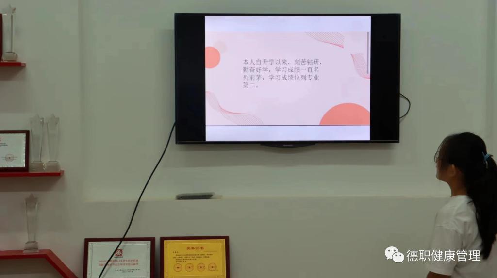 参加此次答辩的同学通过PPT依次从学业情况、社会实践、志愿服务、科研大创等方面展示自我,以优秀的成绩完成每一科的考核的同时,还积极参加了各项活动和各种比赛,并且斩获了多项奖状取得了不俗的成绩,过程中他们条理清晰、表达流畅,尽显一名优秀老员工的综合素质与水平,赢得现场评委老师和同学阵阵掌声,也彰显了健康学子勤奋好学、刻苦钻研的卓越风采。