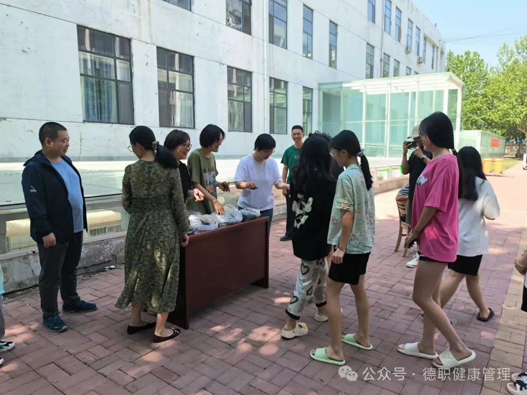 伴着粽子飘香,同学们纷纷排队领取粽子,跟同学、舍友、老师说一句“端午节安康”,一起品尝粽子,共度佳节,其乐融融。