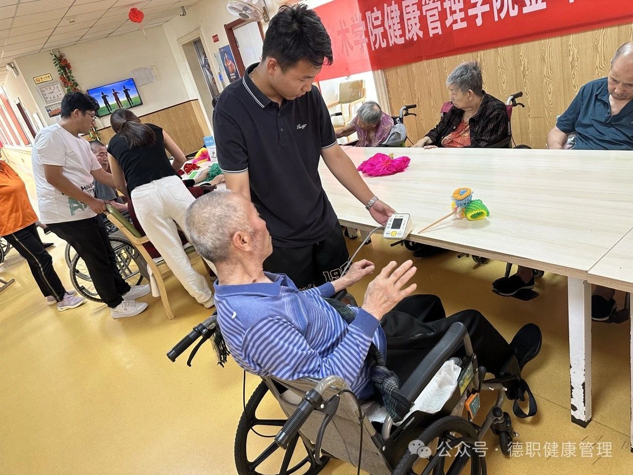 我们和老人们打招呼、拉家常,为老人测量了血压,为老人打扫卫生,并且为老人整理了床铺等一系列活动。