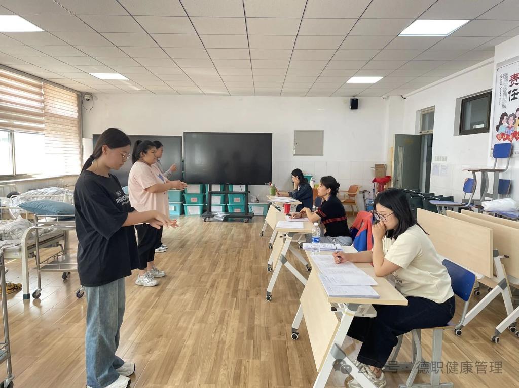 养老护理员职业资格鉴定考试分理论考试部分和实践操作部分。理论考核在博学楼举行,主要考查内容为对不良情绪的老人进行正确疏导。实践技能操作考核在实训楼举行,考试内容为指压法止血的部位与操作以及为昏迷的老人翻身。