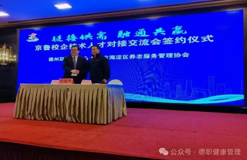 随后,公司作为山东高职院校代表之一,由朱弘主任与北京海淀区养老服务管理协会签订了校企合作意向书。