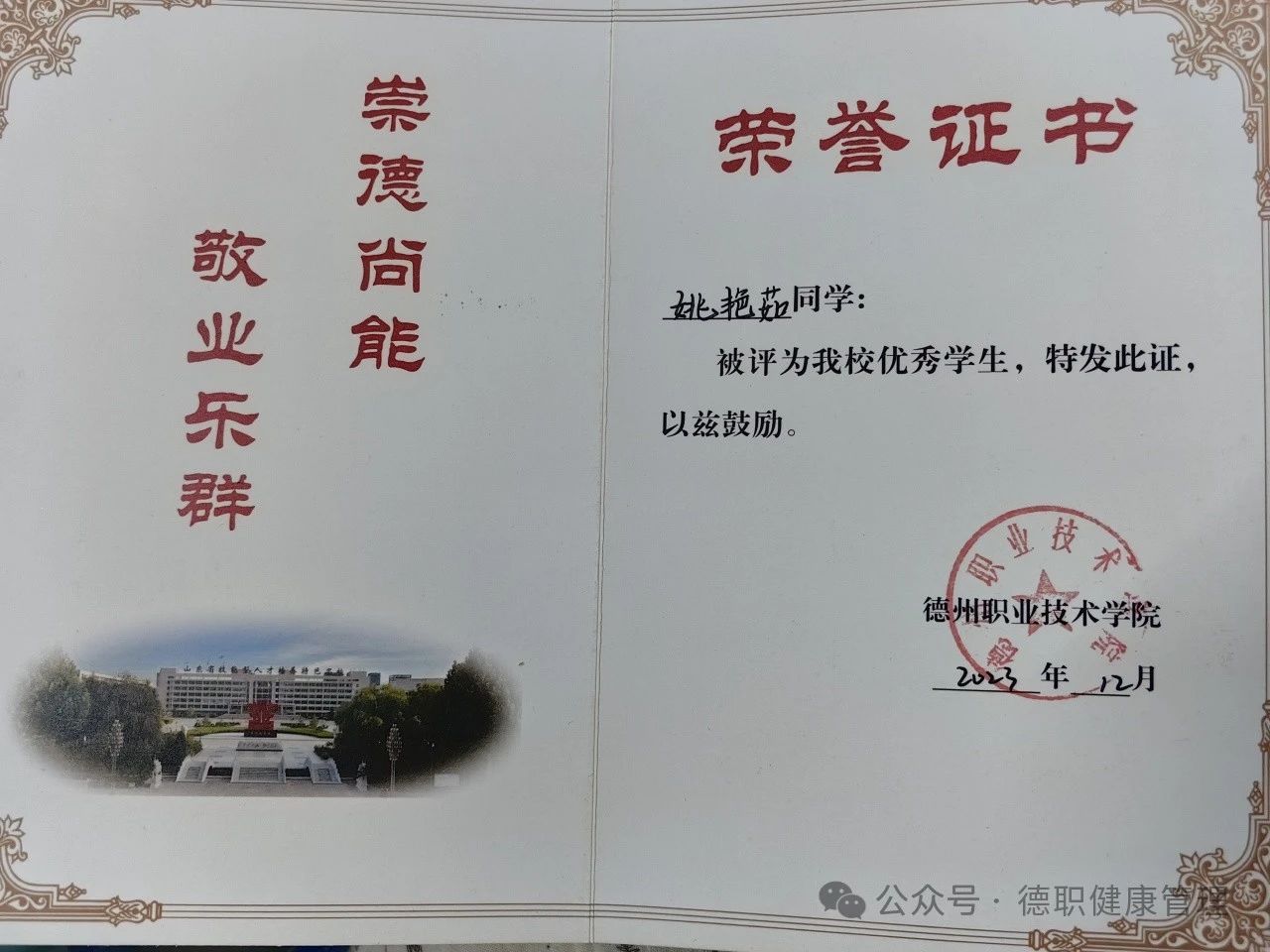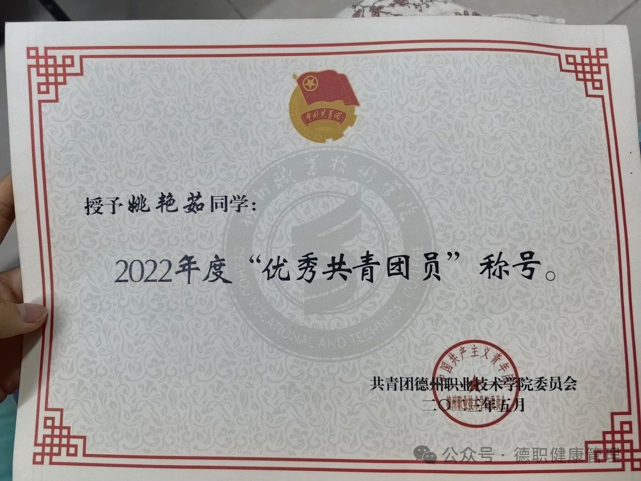 2023年5月被评为太阳成集团“优秀共青团员”。