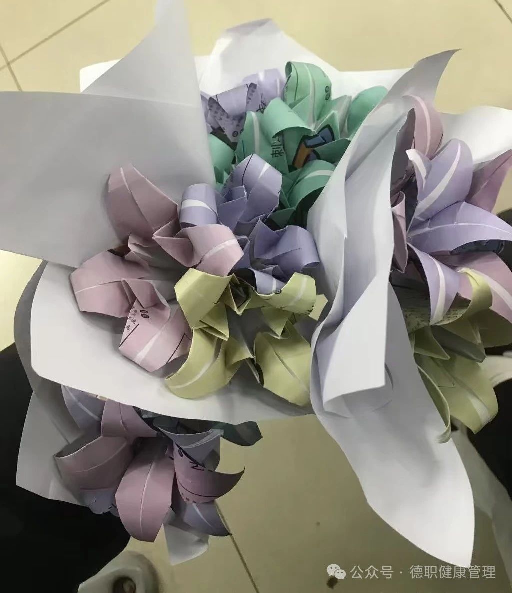 活动现场,社团成员们热情高涨,积极参与。大家认真学习纸花制作技巧,从折叠、裁剪到粘贴,每一个步骤都倾注了专注与用心。五颜六色的纸张在指尖翻飞,逐渐化身为栩栩如生的玫瑰、百合、康乃馨……一朵朵精美的纸花,承载着对女性美好的祝福,也展现了同学们的心灵手巧和艺术创造力。
