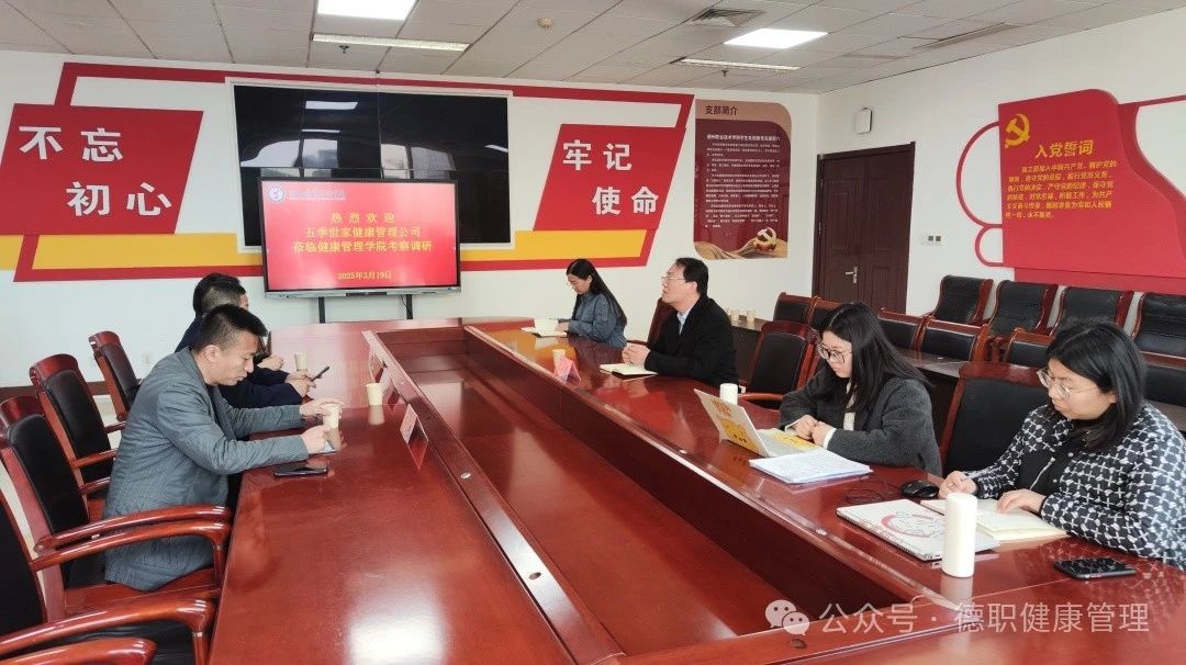 3月19日上午,五季世家健康管理公司总经理田立业、运营总监孙先晓、非物质文化遗产——经络叩击疗法第五代传承人董芝言等一行到公司考察交流。太阳成集团tyc9728经理王英博及相关教师出席座谈。