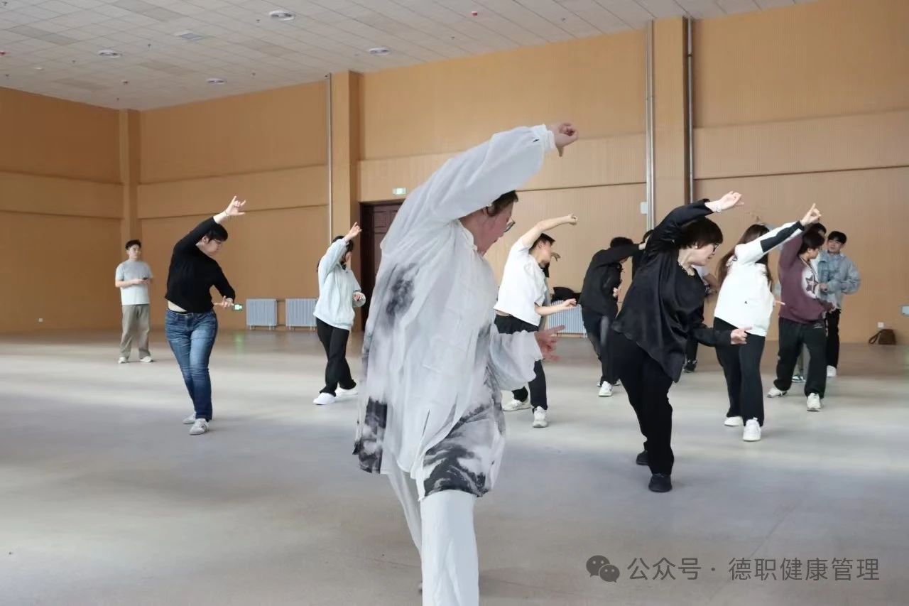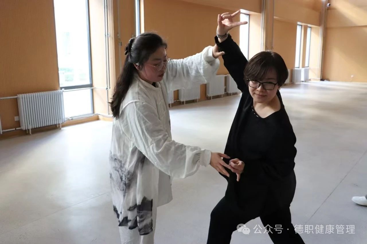 五禽戏作为国家级非物质文化遗产,是中华民族传统体育的瑰宝,其动作模仿虎、鹿、熊、猿、鸟五种动物的形态和神态,具有强身健体、修身养性的功效。此次活动邀请了教练员孔妍老师进行现场教学。