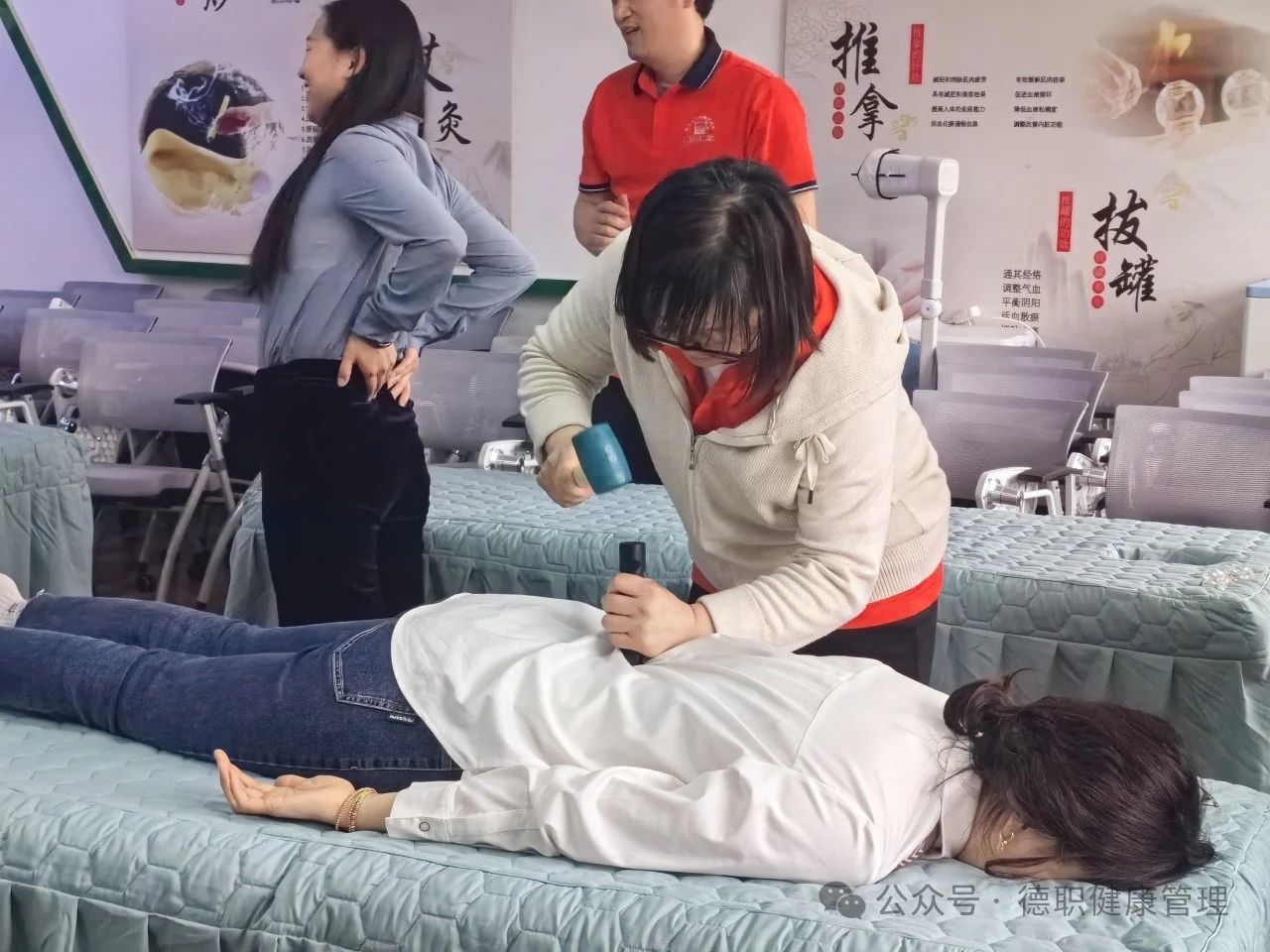 活动期间,传承人先是详细讲解了“经络叩击疗法”的起源、理论根基,以及如何与现代健康理念融合应用,为教职工们揭开这一疗法的神秘面纱。随后,专业技师现场演示规范手法,教职工们踊跃参与互动体验环节,在技师指导下亲身尝试,感受经络被激活、身体放松的奇妙变化。此外,针对教职工普遍存在的亚健康问题,传承人还在健康咨询环节提供一对一建议,传授日常调理小妙招。