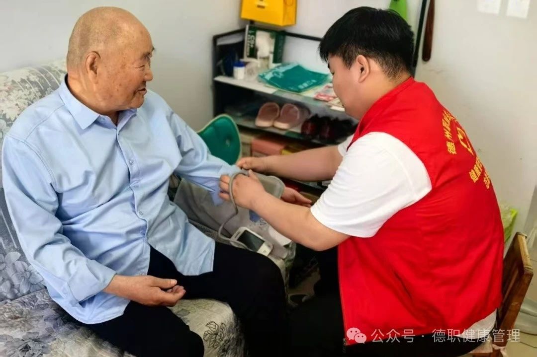 团队成员们也为行动不便的老人提供上门健康服务。队员们耐心地与老人们交流,了解他们的身体状况和日常饮食、生活习惯,给予专业的健康建议。