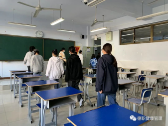 (4)任课老师和健康联络员有序疏散员工至备用教室,并提醒员工做好个人防护,注意佩戴口罩,减少人员接触,注意观察自身情况,保持通讯畅通。