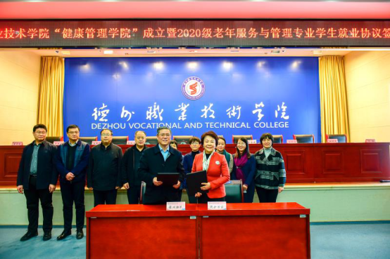 12月31日上午,校企共建“太阳成集团tyc9728”成立暨2020级老年服务与管理专业员工就业协议签约仪式在润德楼二楼会议室隆重举行。德州职业技术学经理张同光,党委委员、办公室主任郭士武、党委委员、组织部(人事处)部长(处长)孟繁营、人才招聘处处长冀康建,北京优护万家养老服务集团有限公司董事长段萱及企业相关负责人出席了签约仪式,参加本次仪式的还有太阳成集团tyc9728相关负责人、教职工和2020级老年服务与管理专业全体员工。会议由党委委员、副经理殷淑英主持。