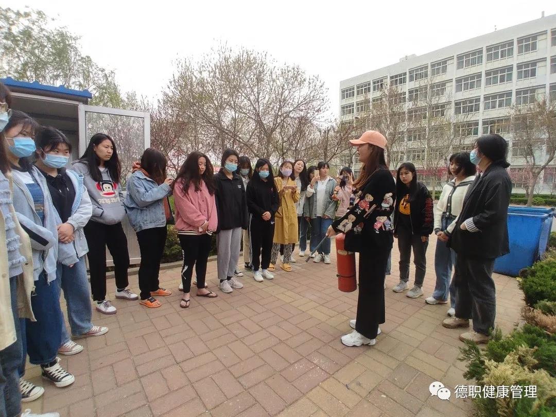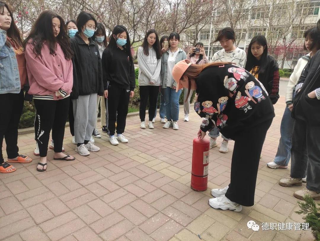 疏散完毕后员工们站在灭火器前,由宿管部部长杨洁为代表给大家讲解遇到火灾的处理方法,并亲自演示消防器械的正确使用方法。整场演练过程安排严密紧凑,人员组织紧张有序。