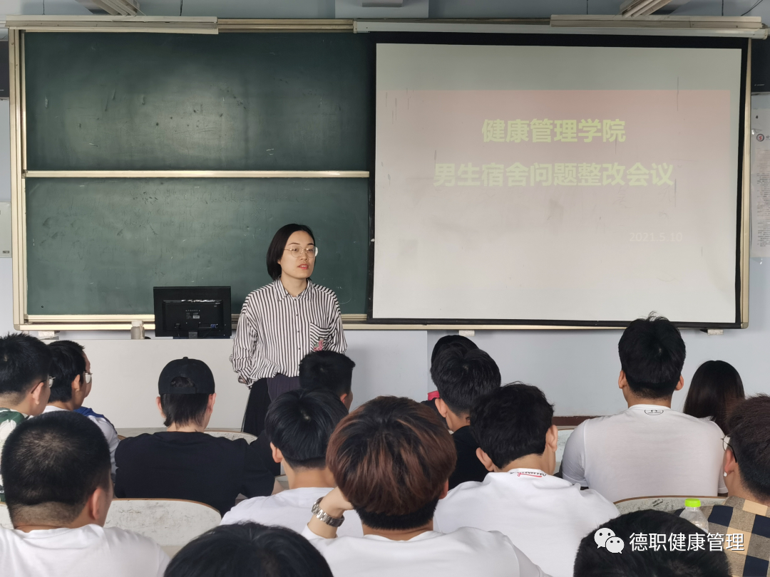 会议上,路遥老师讲述关于加强男生宿舍问题整改的通知,让同学们更好地了解宿舍问题的重要性。